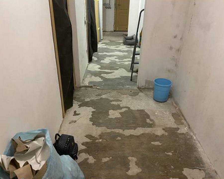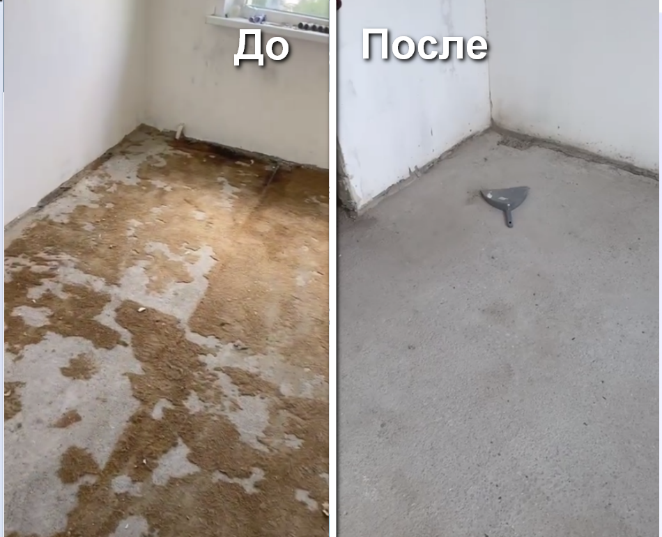 На фото чётко видно качество выполненной работы по удалению клеевых остатков из под старого настила. Комната на 17 квадратов.