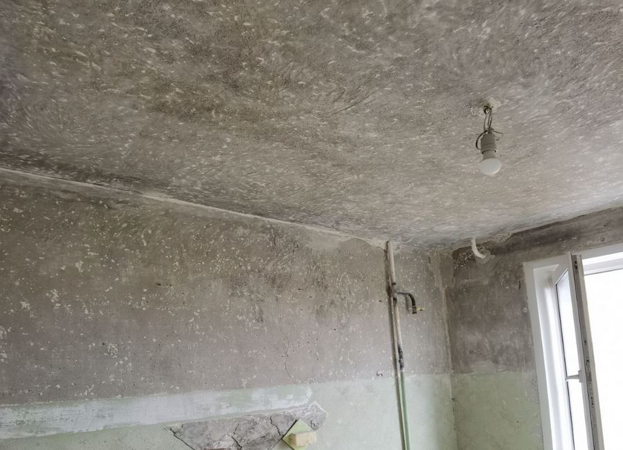 • смыть побелку со стены (и с потолка)